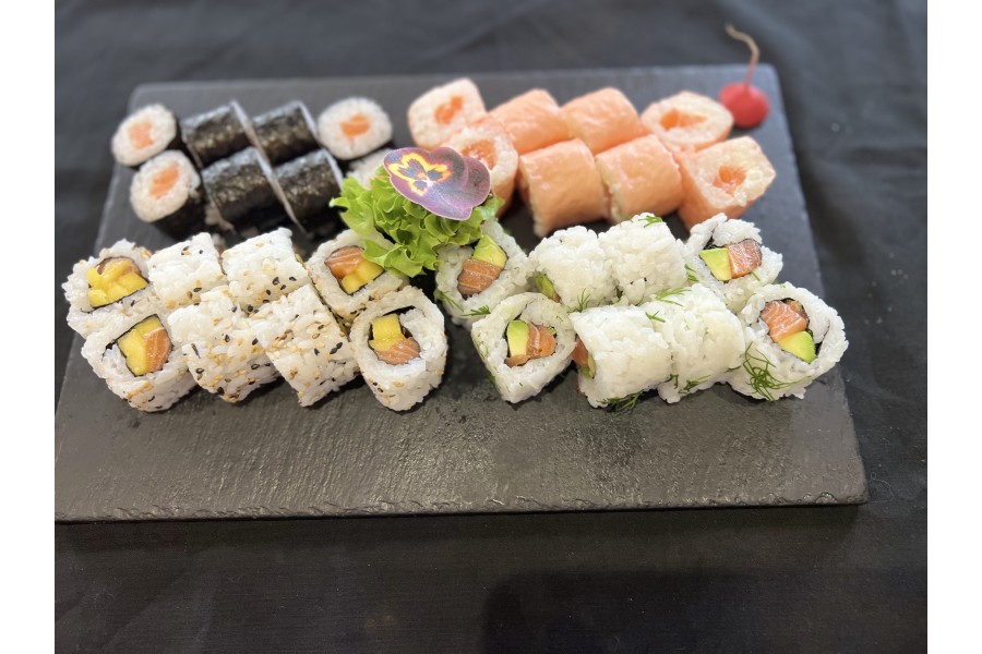 8 maki saumon , 8 california saumon avocat, 8 california saumon mango, 8 soja roll saumon cheese